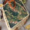 Handmade, hand painted handbag, in breathtaking shades of emeralds and golds.