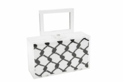 Black and white keffiyeh also known as Shemagh. Entrenched in the Palestinian and other Arab countries, the shemagh has been part of their traditional dress code worn on the head or used as a fabric for scarves. Meera Toukan wants to share this piece inspired by the fusion of Middle Eastern traditions and Western fashion. With women around the world in hopes of bringing the Eastern and Western culture closer together.