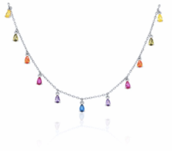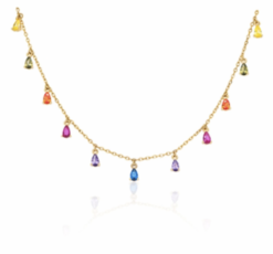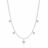The starburst necklace has a delicate small chain necklace and dangling stars covered with cubic zirconium stones